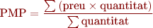 Preu mitjà ponderat (PMP) = [(unitats de les existències anteriors x preu unitari) + (unitats que han entrat x preu unitari)] / nombre total d’unitats després de l’entrada