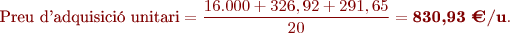 | 15 (existències anteriors) + 35 (compra) = 50 | 13.850 / 50 = 277 | 4.050 + 9.800 = 13.850 |