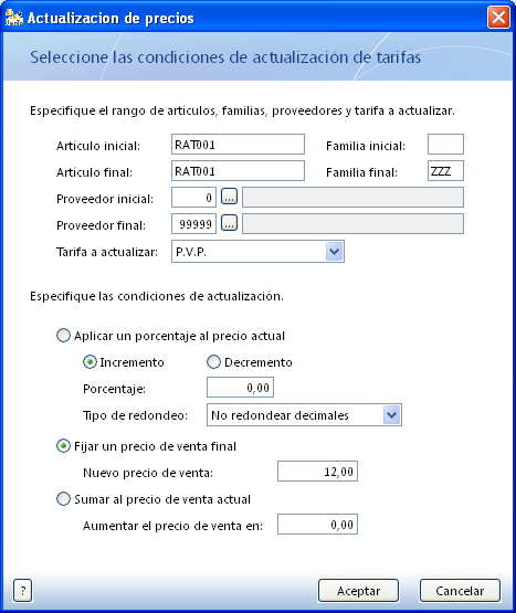 També es pot fer una modificació dels preus de venda a partir dels preus de venda actuals.