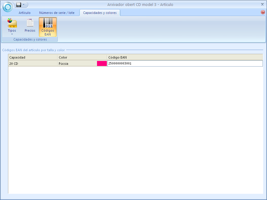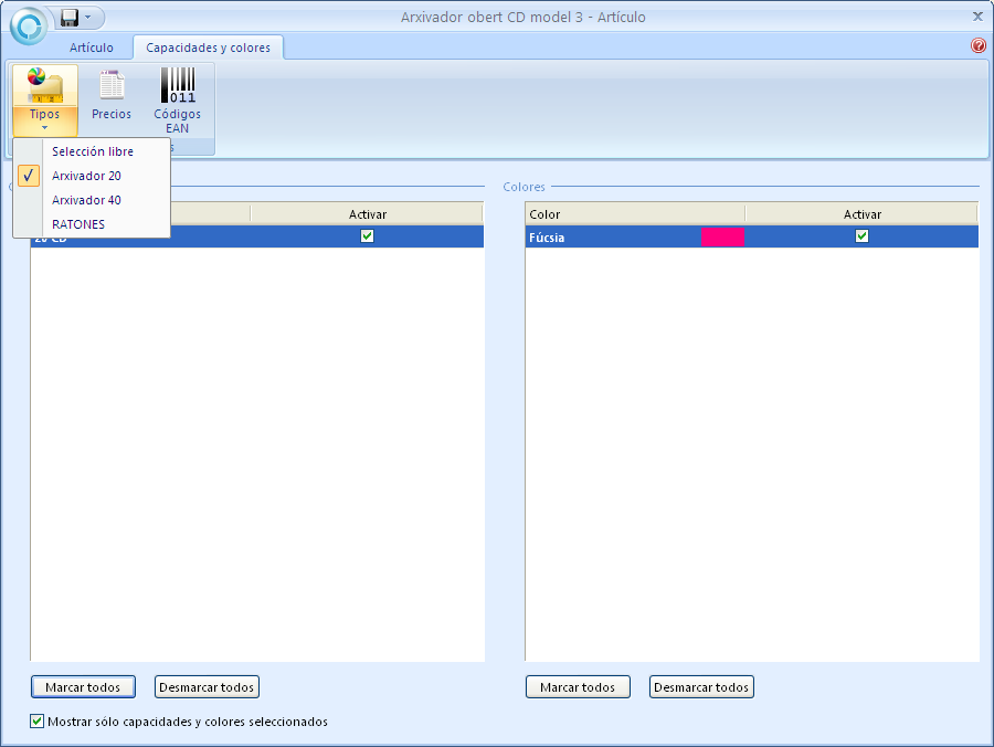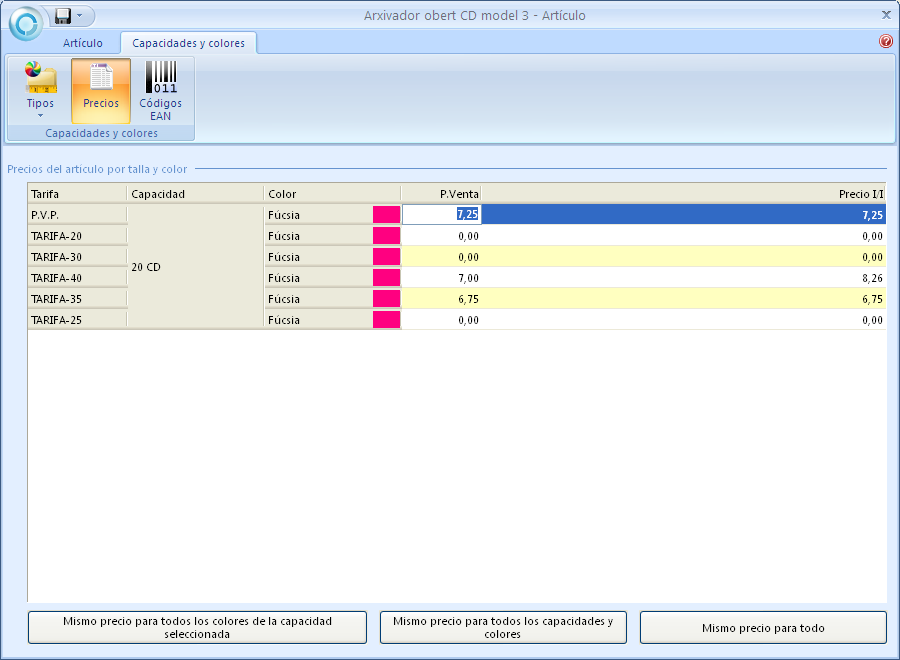 En les fitxes dels articles també s’han assignat uns preus manualment quan aquests es gestionen per capacitats i colors.