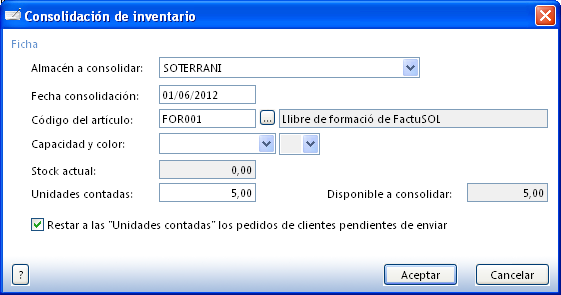 Després de la restauració disposeu d’una empresa creada a FactuSOL que conté prou informació per poder gestionar el magatzem. Només us falta configurar la gestió del magatzem i introduir uns nous articles, els quals s’hauran de codificar, donar-los d’alta i introduir els seus estocs inicials.