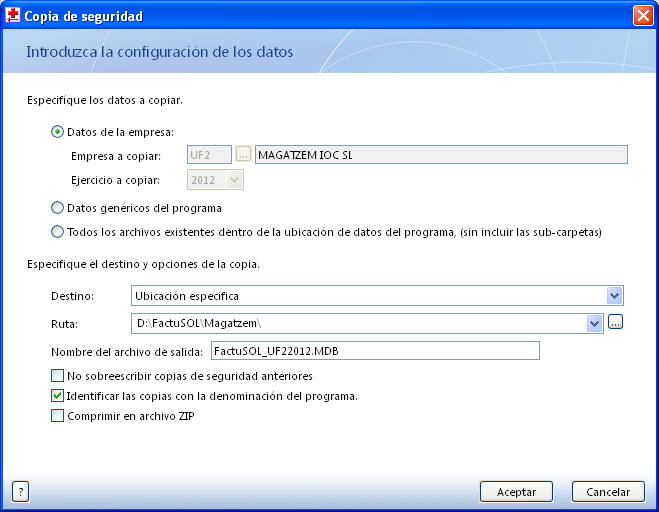 - Feu la còpia de seguretat de la vostra empresa de magatzem IOC: aneu a Sistema\Seguridad\Copia de seguridad. Com que és l’empresa que teniu activa, ja apareix seleccionada. Observeu i modifiqueu, si cal, la ruta on es desarà aquesta còpia, per després poder-la utilitzar en una possible restauració.