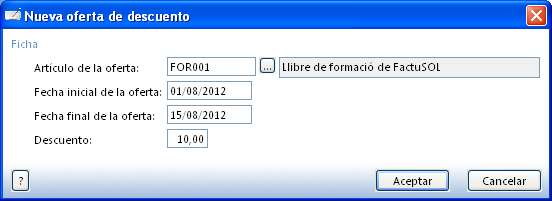 - Una oferta de descomptes per als llibres de formació de FactuSOL, a un 10% de l’1 al 15 d’agost: Ofertas\Ofertas de descuentos.