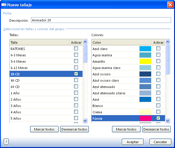 - Els dos tallatges: Tallas y colores\Archivo de tallajes.