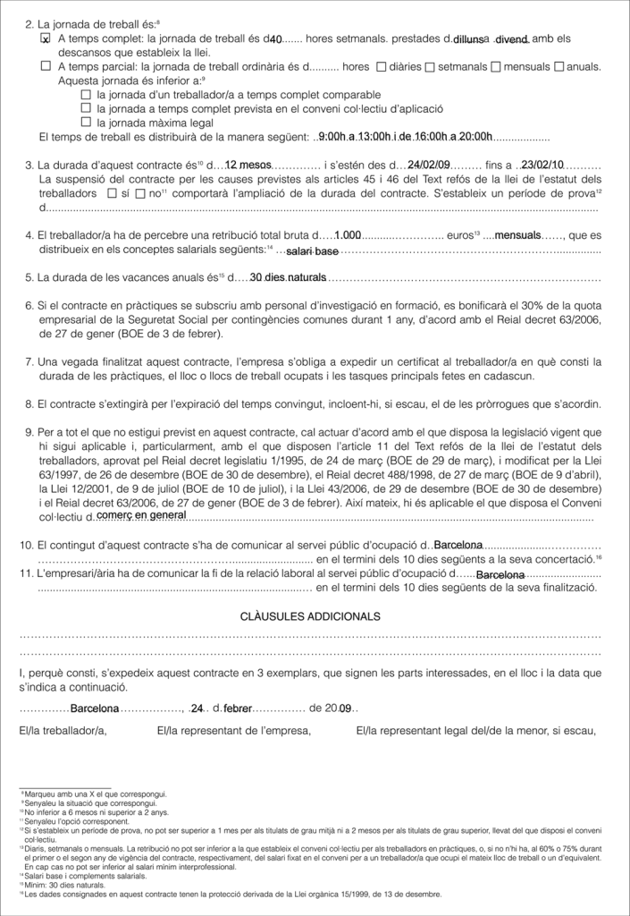 El contracte de treball també regula aspectes bàsics de la relació laboral com són el temps de treball o la jornada laboral, la retribució salarial, el conveni d’aplicació i les clàusules addicionals. Per això n’hem de conèixer el contingut mínim i els requisits de forma.