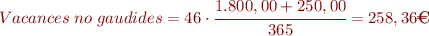 - Retribució de les vacances no gaudides. Hem de tenir en compte que durant l’any s’ha treba- llat durant quaranta-sis dies, per tant se n’ha de calcular la part proporcional respecte del total de l’any.