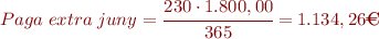 - Part proporcional de paga extra de juny. Les pagues extraordinàries s’han de meritar des de l’1 de juliol fins al 30 de juny. Per tant, cal veure quants dies han transcorregut des d’aleshores. Són 230 dies.