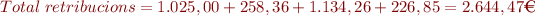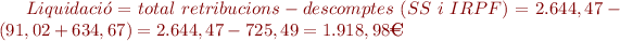 4. Obtenció del total que cal liquidar: S’obté en restar al total de les retribucions les deduccions per cotització a la SS i la retenció de l’IRPF.