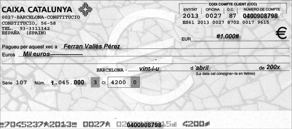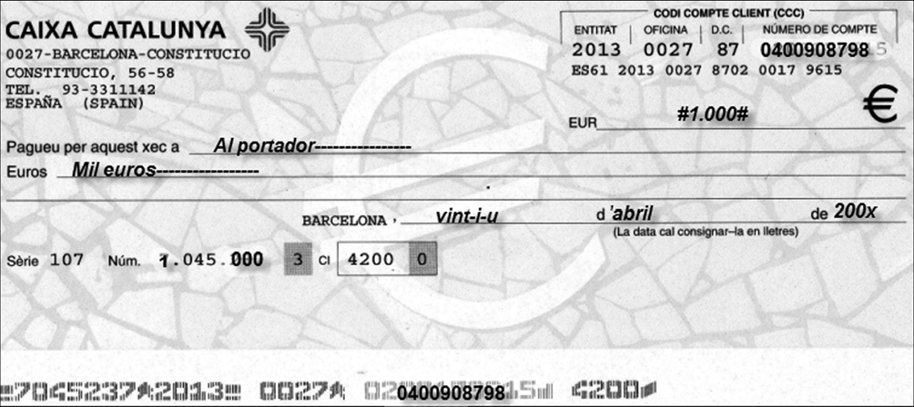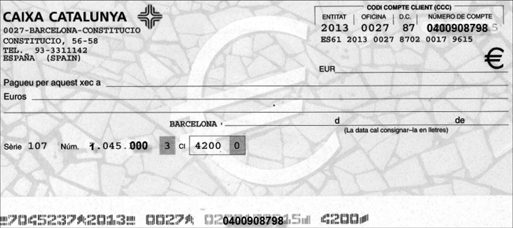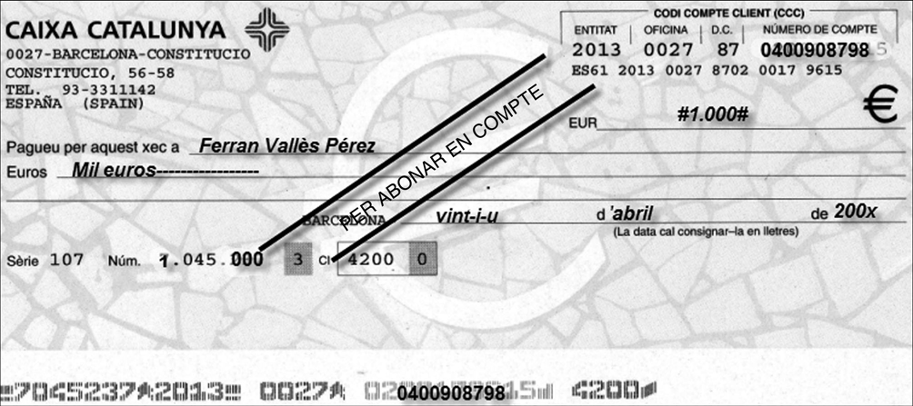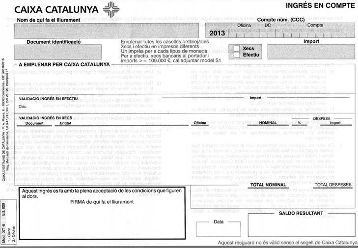 4. Ingrés inicial en el compte. És el lliurament per part del client d’una quantitat de diners (en efectiu o mitjançant un xec) amb la qual obre el compte i comença la relació comercial amb l’entitat.