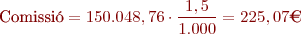 Calculeu l’import de la compra per a l’empresa si el pagament es fa per una transferència instrumentada en un compte bancari en euros, en què la comissió és d’1,5
