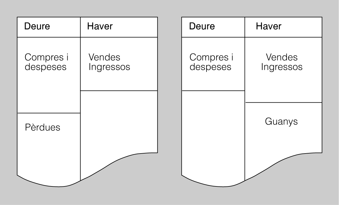Suposant que una empresa compra una furgoneta i ven un edifici, per la compra de la furgoneta té una pèrdua, i per la venda de l’edifici, un benefici. S’ha de comptabilitzar la pèrdua en el compte de despeses i el benefici en el compte d’ingressos, mai no es podrà compensar la pèrdua amb el benefici.