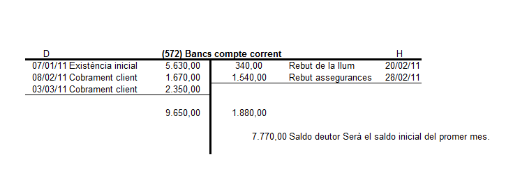 - El dia 20 de febrer el banc (li carreguen) paga el rebut de la llum per un import de 340 €.