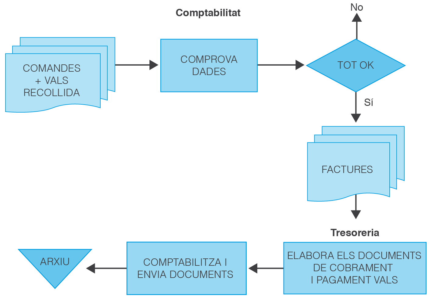 Els diagrames de flux són gràfics que representen la circulació de documents i operacions que s’hi relacionen i de les persones que tenen autoritzacions en cada etapa del procés documental.