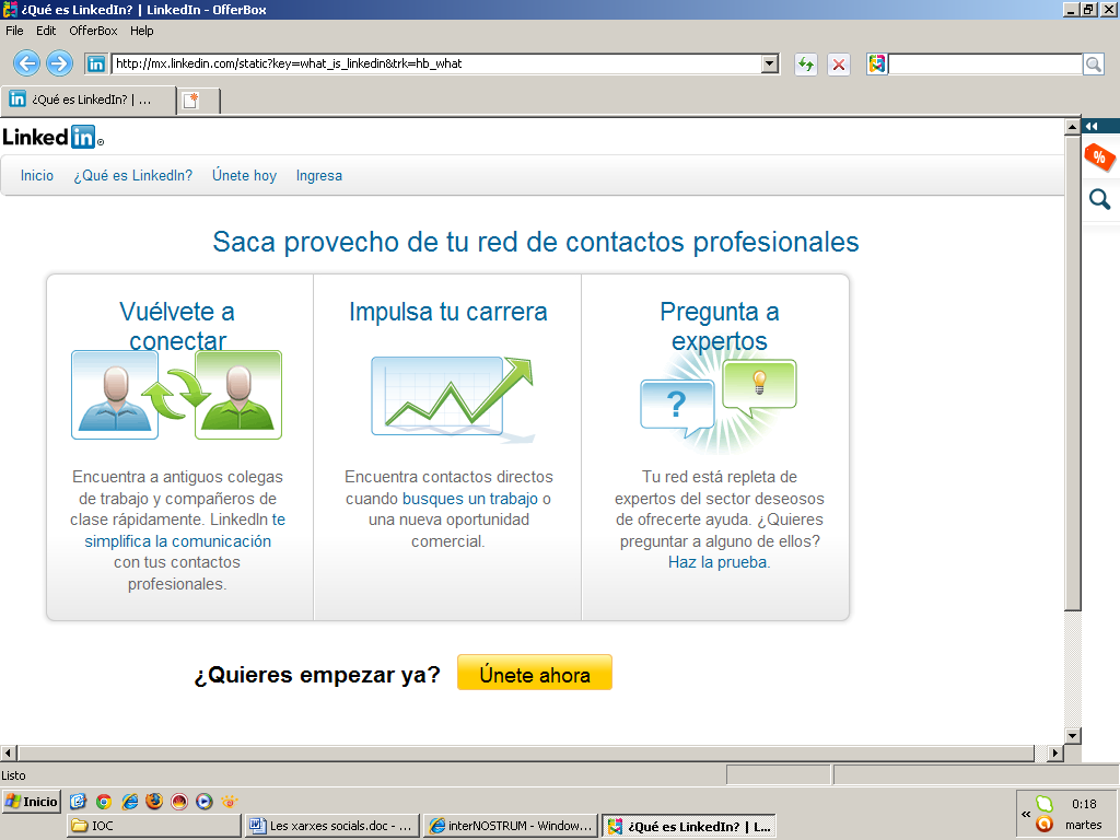 LinkedIn: és una plataforma orientada a connectar professionals de tot el món. La website de LinkedIn va ser llançada al 2003, i és la xarxa de professionals més gran del món amb més de 120 milions de membres.