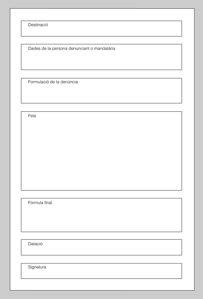 - Destinatari: a qui es dirigeix la denúncia per tal que la resolgui.