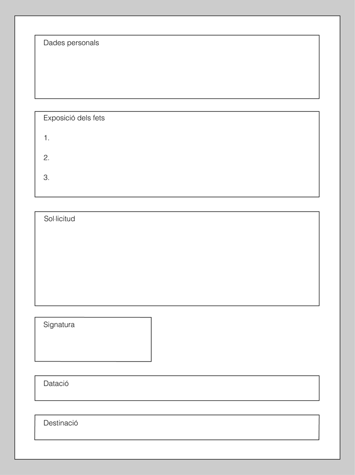 Les sol·licituds, també anomenades instàncies han de contenir:
