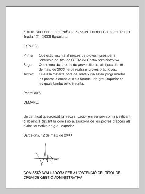 - L’exposició clara i concisa del que se sol·licita.