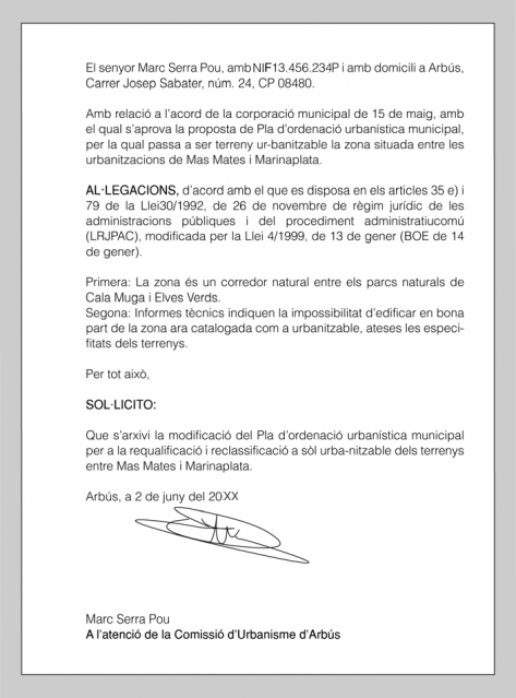 - Introduir les al·legacions amb una fórmula que permeti fer referència al fonament legal en què es basa.