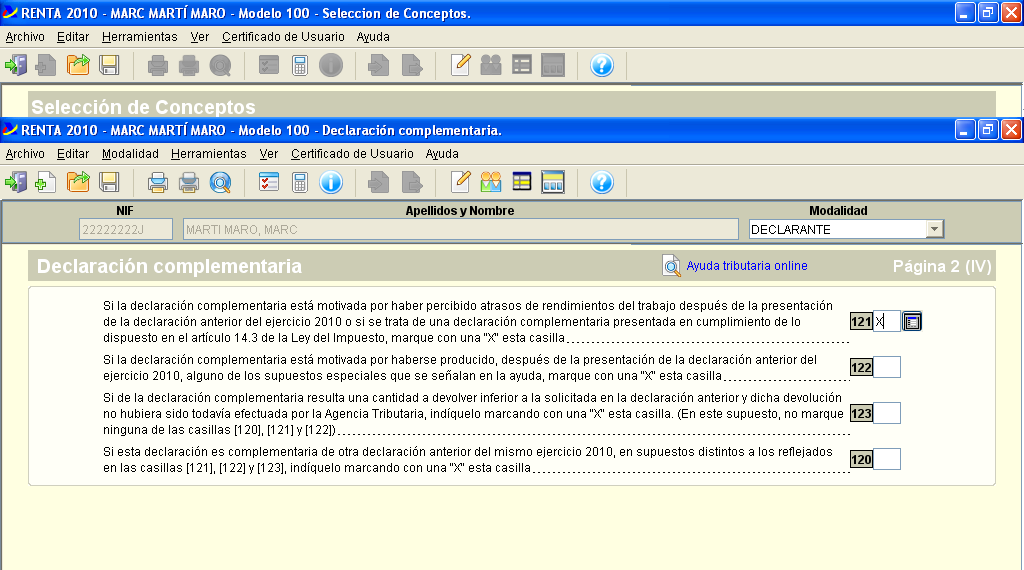 Un dels inconvenients de les declaracions complementàries és que l’Agència Tributària no concedeix el sistema d’ajuda presencial que ofereix per a fer les declaracions corresponents a l’exercici. Així doncs, cal descarregar el programa PADRE corresponent a l’exercici en què s’han d’imputar les rendes noves que s’han generat, marcar la casella que indica que és una declaració complementària, i incloure la informació relativa a la declaració de la renda de l’exercici afegint els nous ingressos a declarar.