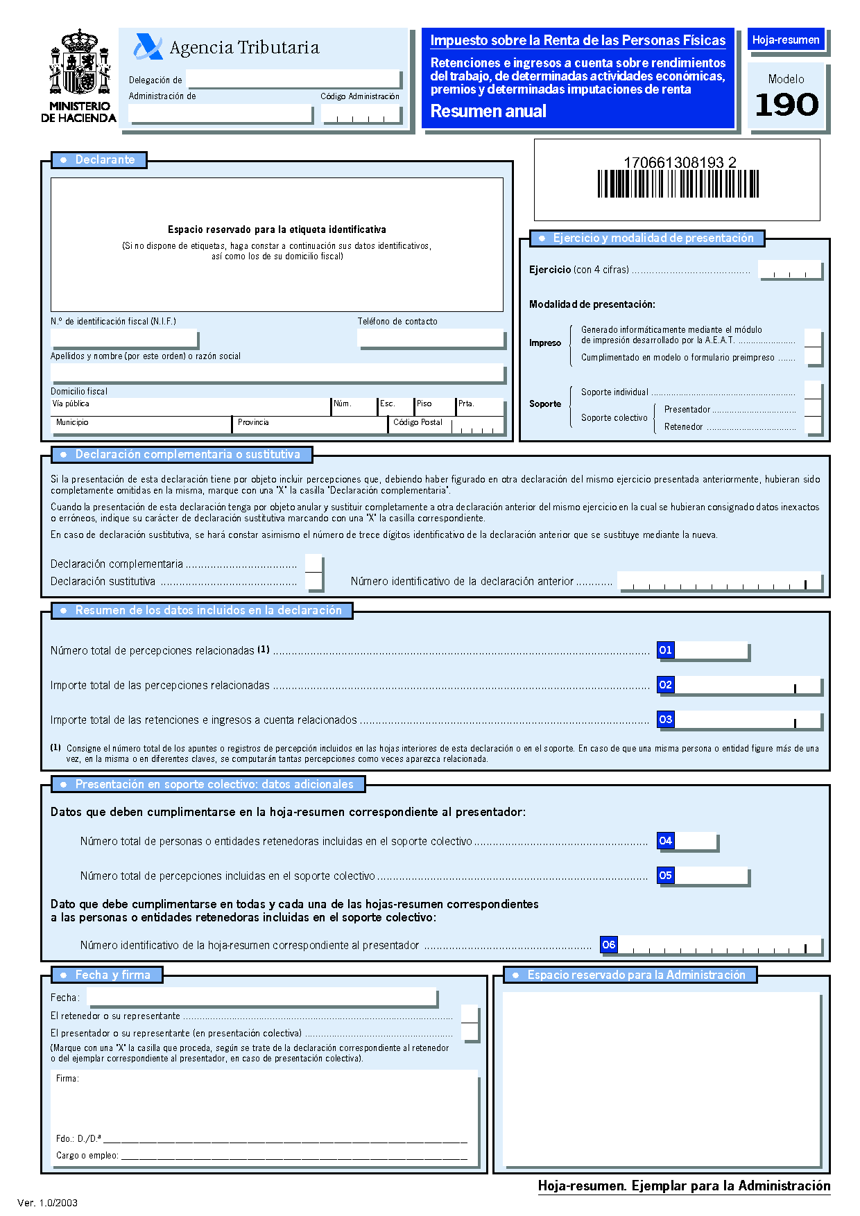 En la figura podem veure el model 190 en format preimprès.