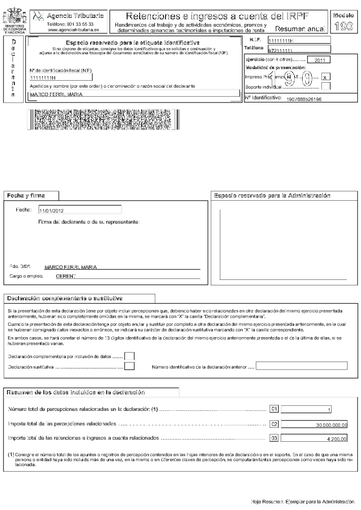 Per tal de facilitar la presentació d’aquests models, l’Agència Tributària posa a disposició dels usuaris un programari per a la gestió de les declaracions informatives. Amb aquest programari, és possible generar i emplenar els impresos. En la figura podem observar un formulari emplenat amb l’aplicació Informativas del model 190 (el primer full).