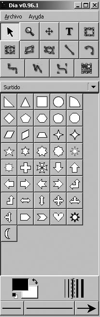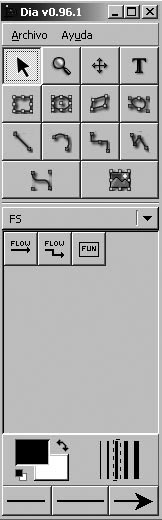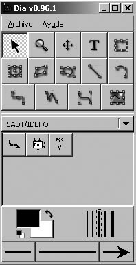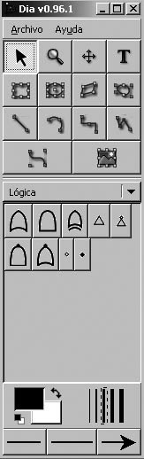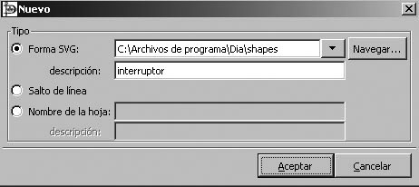 La nova forma de l’interruptor ja és accessible des de les biblioteques de les eines principals de Dia.