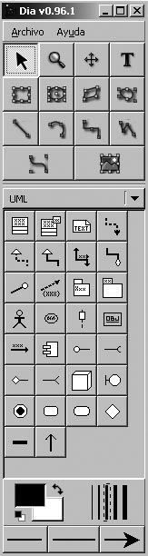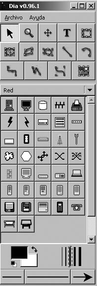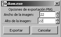 Es pot utilitzar qualsevol resolució però és recomanable utilitzar 22 píxels d’amplada, que és la grandària utilitzada per a les formes a les llibreries de Dia.
