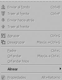 El menú Objectes permet posicionar objectes davant o darrere d’altres, alinear o agrupar objectes.