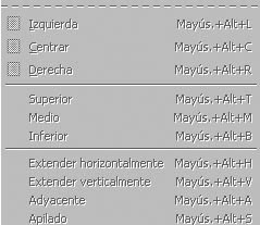 El submenú alineació permet ordenar els objectes del diagrama. La figura mostra les opcions d’aquest submenú.