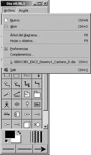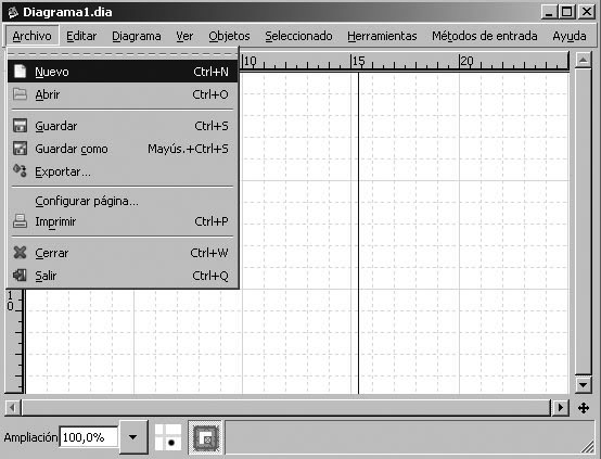 La creació d’esquemes o diagrames nous es pot fer en obrir el programa Dia o una vegada obert des del submenú Nou, del menú Arxiu.