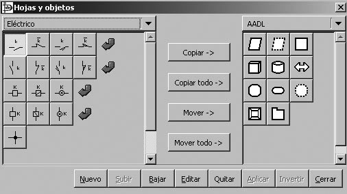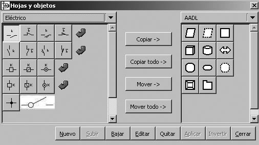 Per afegir una nova forma s’ha de seleccionar primer la biblioteca. En la figura es mostra seleccionada la biblioteca elèctrica.