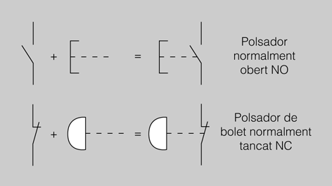 Si hem de representar el símbol d’un polsador ho farem amb la suma de dos símbols, tal com es representa en la figura.