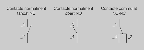 Els símbols de contactes dins d’un automatisme elèctric més freqüents són els que figuren en la taula.