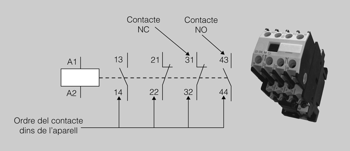 | Contacte temporitzat obert a la desconnexió i contacte temporitzat tancat a la desconnexió |