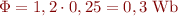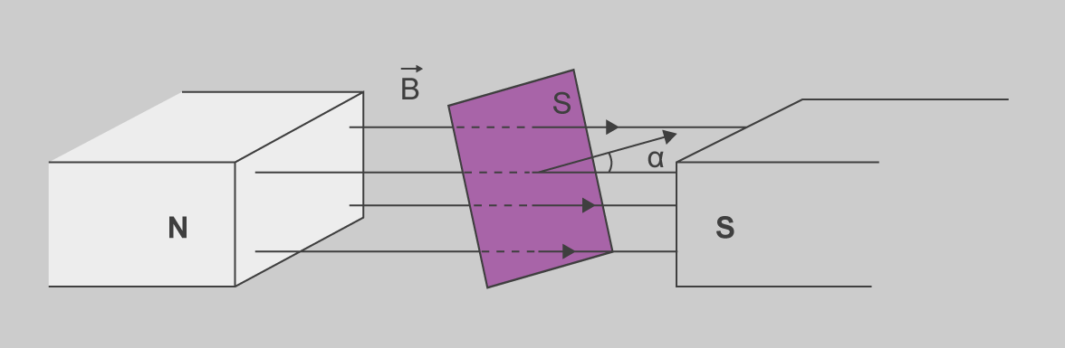 Aquí, B és la inducció magnètica, S és la superfície en m2 i α és l’angle entre la perpendicular de la superfície i les línies de camp magnètic.