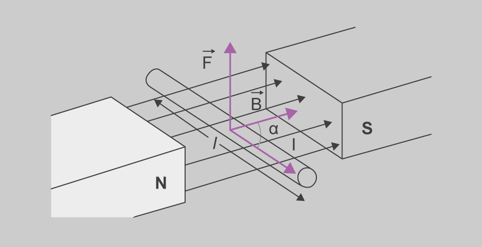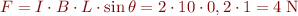 Aquí, F és la força generada expressada en N, I és el corrent expressat en A, B és el camp magnètic expressat en T, L és la longitud del conductor expressada en metres i θ és l’angle que formen el vector de camp magnètic i el vector de corrent (direcció i sentit del corrent elèctric).