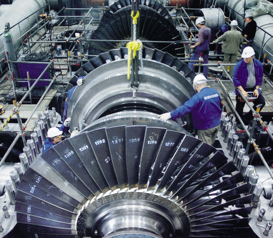 El bloc de bobinatges en què el nucli giratori (en l’interior), que gira gràcies a les turbines, indueix el corrent elèctric que després es distribueix.