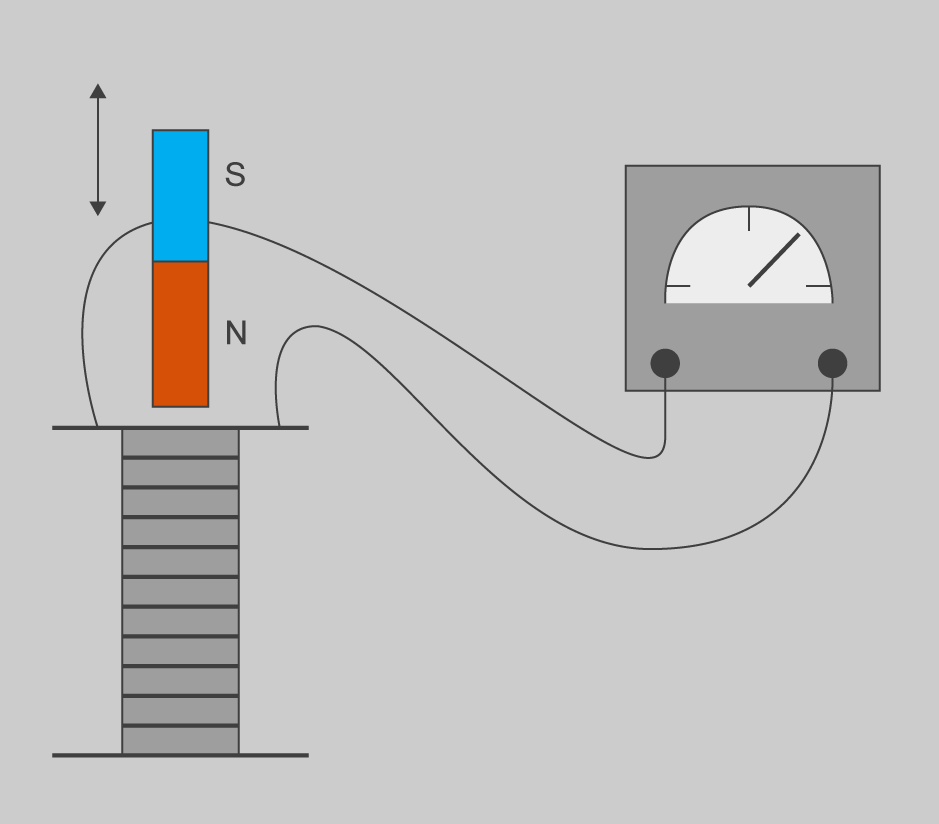 Si es connecta un solenoide –una bobina– sense nucli a un amperímetre i es col·loca un imant en l’interior o a l’eix, es pot veure què passa quan una cosa interacciona amb l’altra (vegeu la figura).