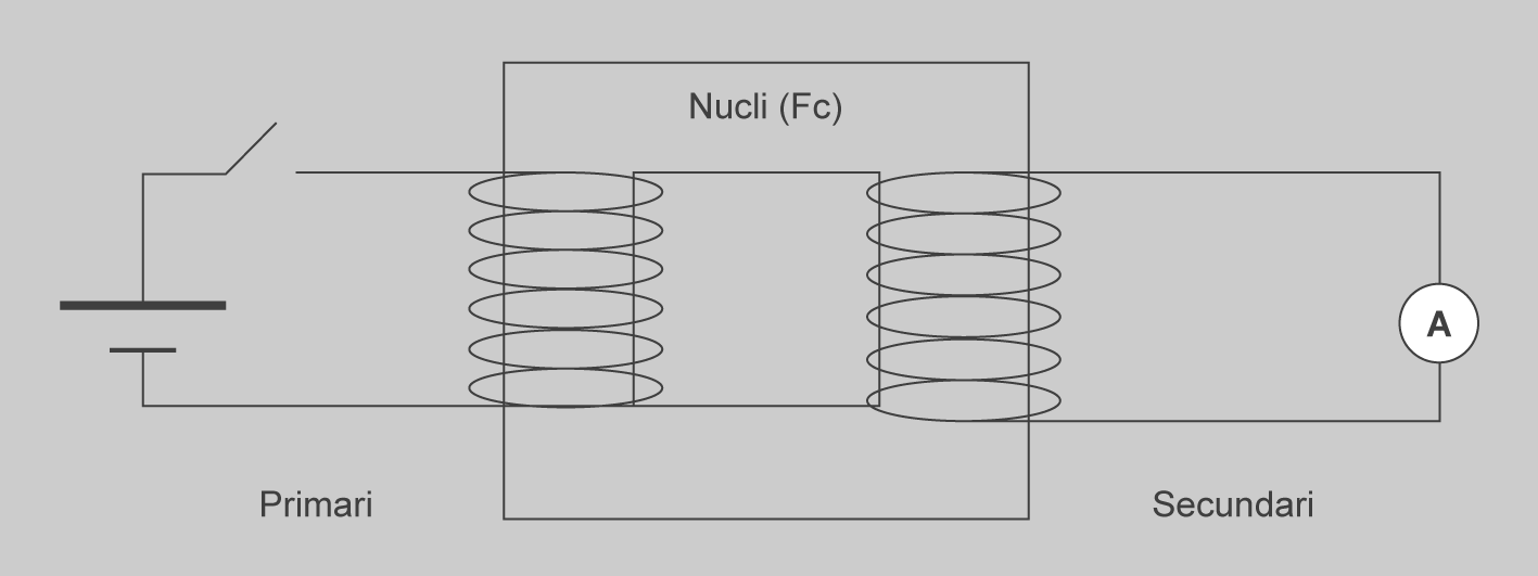Si es connecta un solenoide –bobina– a una bateria i el nucli ferromagnètic de la bobina es col·loca de manera que passi com a nucli d’una altra bobina elèctricament aïllada, a la qual es connecta un amperímetre (vegeu la figura), es pot veure què passa quan s’obre i es tanca l’interruptor del primer circuit.