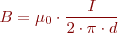 Aquí, B és la inducció magnètica resultant, μ0 és la permeabilitat magnètica del mitjà en què és immers el conductor, I és el corrent en A i d és la distància en metres.