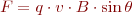 Aquí, F és la força generada expressada en N, q és la càrrega expressada en C, v és la velocitat de la partícula expressada en metres per segon, B és el camp magnètic expressat en T i θ és l’angle que formen el vector de camp magnètic i el vector de velocitat (direcció i sentit del moviment de la partícula).