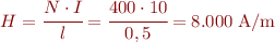Com que la intensitat de camp magnètic s’ha calculat abans (8.000 A/m, a l’exemple anterior), la força magnetomotriu també s’hagués pogut calcular com: