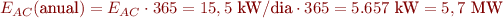 En el cas de voler estimar l’energia anual generada, només hem de multiplicar l’energia diària generada pel nombre de dies d’un any (365):
