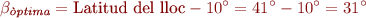 Una instal·lació solar fotovoltaica aïllada es dimensiona per al mes de pitjor radiació. En una instal·lació d’ús tot l’any, amb grup electrogen de suport, el mes de disseny és desembre i la inclinació òptima dels panells (βòptima) és de 51,4º: