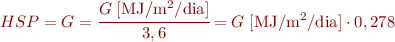Recordem que les hores solars pic (HSP) es corresponen a la radiació rebuda en kWh/m2/dia:
