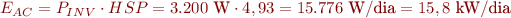 Si calculem l’energia diària a partir de la potència nominal de l’inversor (PINV), obtindrem un resultat semblant: