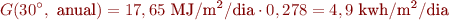 Per calcular la radiació anual rebuda (G) o el nombre de HSP anuals podem multiplicar per 365: