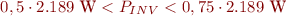 La potència de l’inversor ha d’estar compresa entre els valors següents: