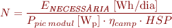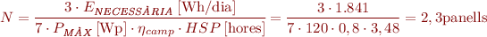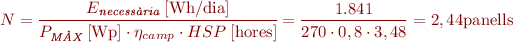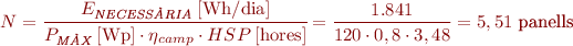 La instal·lació és d’ús diari, per tant, determinarem el càlcul dels mòduls necessaris (N) en una instal·lació autònoma amb l’expressió següent: