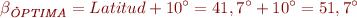 La inclinació òptima (βÒPTIMA) per a una instal·lació d’ús continuat tot l’any amb grup electrogen de suport en aquesta ciutat és d’aproximadament 50º: